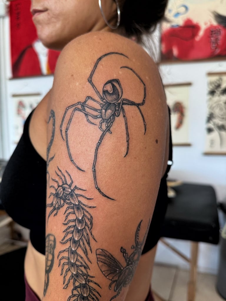 Una vez que te tatuas con Caro, no hay vuelta atrás. Yo no me tatúo con nadie que no sea ella así la tenga que esperar años. La calidad de los detalles y de las lineas son incomparables.